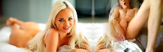 Hot Blond Nubile In Black Stockings Ride A Big Cock