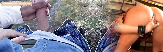 A walk in the nature turns into a sizzling handjob, almost got caught