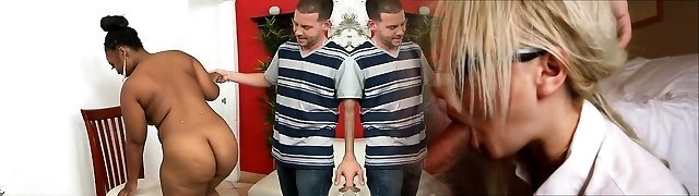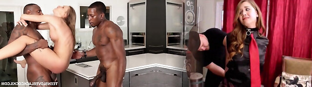 07:55Slim nubile April Brooks is getting ravaged by 2 black stallions on the kitchen