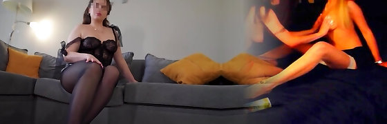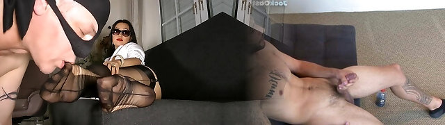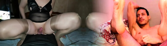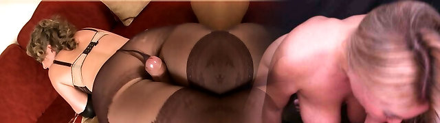 Sexy MILF Gets Her Nylon Black Tights Jizzed After Playing a Bit With Her Hubby's Dong