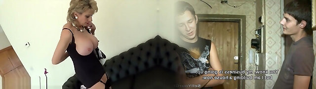 Lady in super-steamy black lingerie has threesome for creampie finish