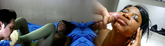 Ebony teen Barbie colored nylon feet licking by Foot Girls