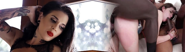 Incredibly sexy Joanna Angel in black lingerie railing a hard trouser snake