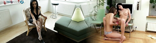 Cute Blackhaired Tramp Strokes Her Pussy Fingering Clit