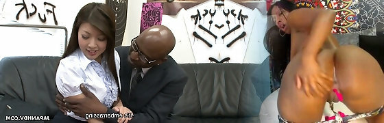 A small chick comes for a job interview and meet a big black fellow with giant black cock.