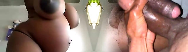 Stunning black trans with bigcock tugs solo