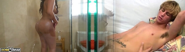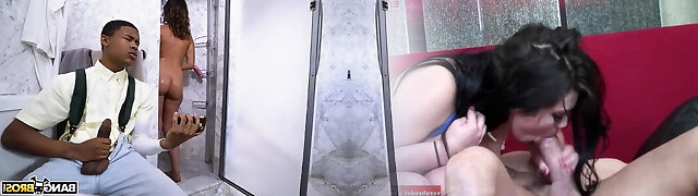 Latina Kelly Oliveira takes shower before sex with huge Dark-hued Cock
