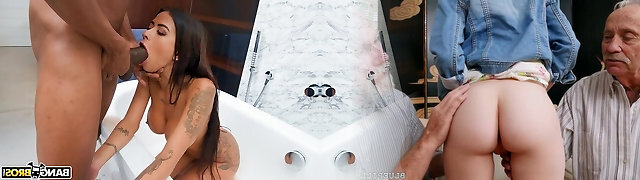 Amazing interracial fucking in the bathroom with red-hot backside Helena Price