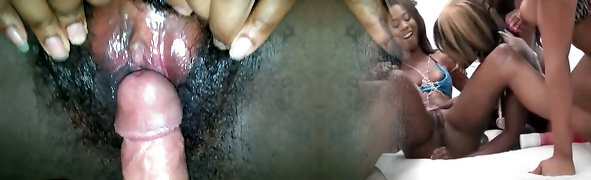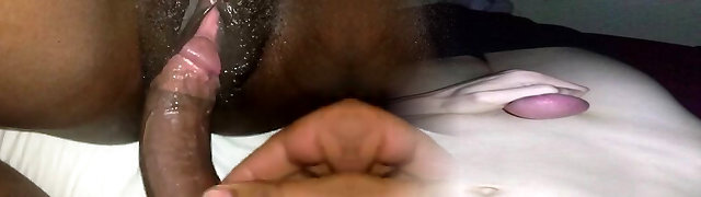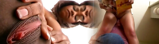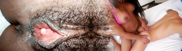 Fingering and stretching my ebony GF's furry punani in macro shot video