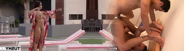 Lana Sands is fucked in the backside by TT Dude, gets his blast in and over her ass and Julian St. Jox'_ load in her jaws