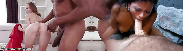 Lovely Dark-hued girl gets blowbanged by White supremacists