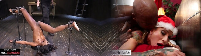 Flexible ebony subject dominated while bound in tools