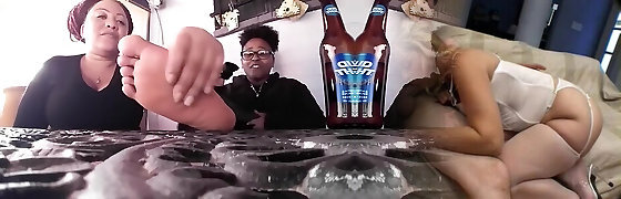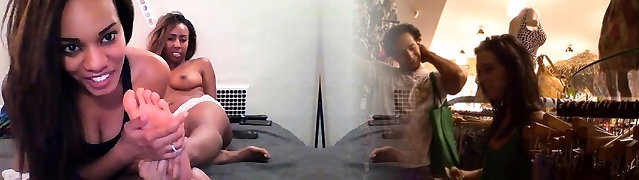 Sexy ebony cuban gets her feet gobbled by lesbian