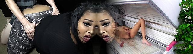 Red-hot black head Christina Bella enjoys rubbing her clit