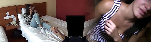 Chinese girls wear white socks with two black bars.Dude tickle her feet.