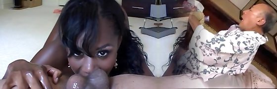 Fantastic brunette super-hot slut in black lingerie blows huge black prick