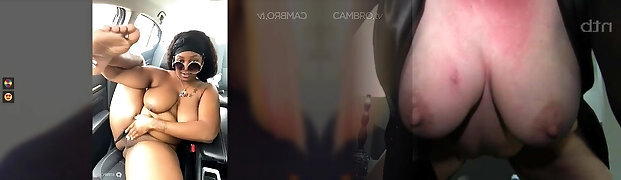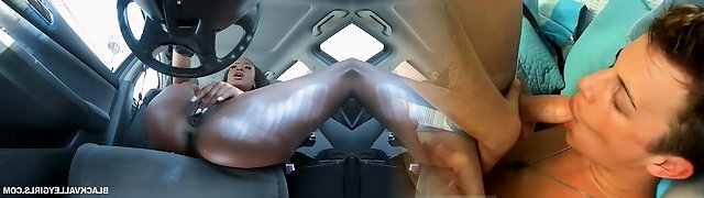 Caught sexy curly ebony babe Demi Sutra masturbating in a car and boned her on a bed
