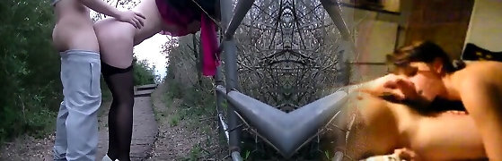 Towheaded milf having sex outdoor with a ebony guy with BBC