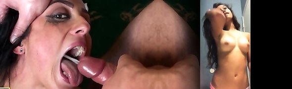 This Gal swallows his explosion and ask if he got more. Guess she is still hungry for black jizz.