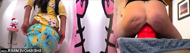 Chubby cockslut gets her asshole used as a toilet, anal play and gape