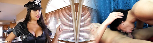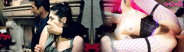 Hot brunette in dark-hued, latex costume, Ginebra Bellucci is getting fucked in her apartment for pleasures